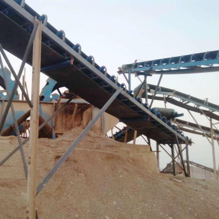 主要由機架、輸送皮帶、皮帶輥筒、張緊裝置、傳動裝置等組成。機身采用優質鋼板連接而成 ,由前后支腿的高低差形成機架,平面呈一定角度傾斜。機架上裝有皮帶輥筒、托輥等,用于帶動和支承輸送皮帶。有減速電機驅動和電動滾筒驅動兩種方式。皮帶輸送機廣泛用于冶金、煤炭、水電、礦山等部門中用來輸送散裝物料或成件的輸送。在設備生產中廣泛的應用在石料生產線的輸送中。