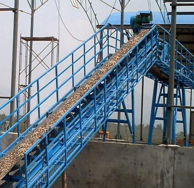移動式皮帶輸送機,膠帶主要有寬度500、600、650、800mm,1000、1200、1500等特殊規(guī)格可以另行設(shè)計,皮帶輸送機是一種連續(xù)輸送散狀物料或成件物品的運輸設(shè)備,具有結(jié)構(gòu)緊湊,工作性能可靠、輸送量大、生產(chǎn)效率高、操作靈便等優(yōu)點,廣泛運用于港口、碼頭、車站、倉庫、料場、廠礦等地輸送煤炭、砂石、糧食、化工原料、成件物品等。輸送機配有行走輪,可作整機移動,輸送傾角可以根據(jù)實際需要調(diào)整,大傾角為22度,變幅機構(gòu)可以手動調(diào)整,也可以采用電動執(zhí)行;根據(jù)輸送工藝布置要求,可以單機或多臺組成水平或傾斜的輸送系統(tǒng)。