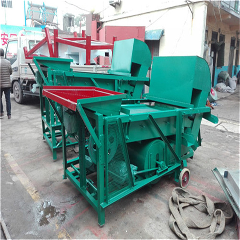 本機為三層篩網,先經過進料口處風機抽風,直接抽走重量輕的雜葉或麥秸稈,上層篩的初次篩分再把大雜清理過,好的糧食(種子)直接落到下層篩網上,下層篩網會把糧食(種子)中的小雜.小石子.有缺陷的糧食(種子)直接漏掉,完好的糧食(種子)會從出料口篩分出來。該小型清糧機解決了揚場機的功能單一,不能有效去除石子.土塊的缺陷,更能為清理、凈選糧食(種子)帶來滿意的效果。該機有占地小,移動方便,便以維修,除塵除雜效率明顯,能耗低,使用簡便等優點。